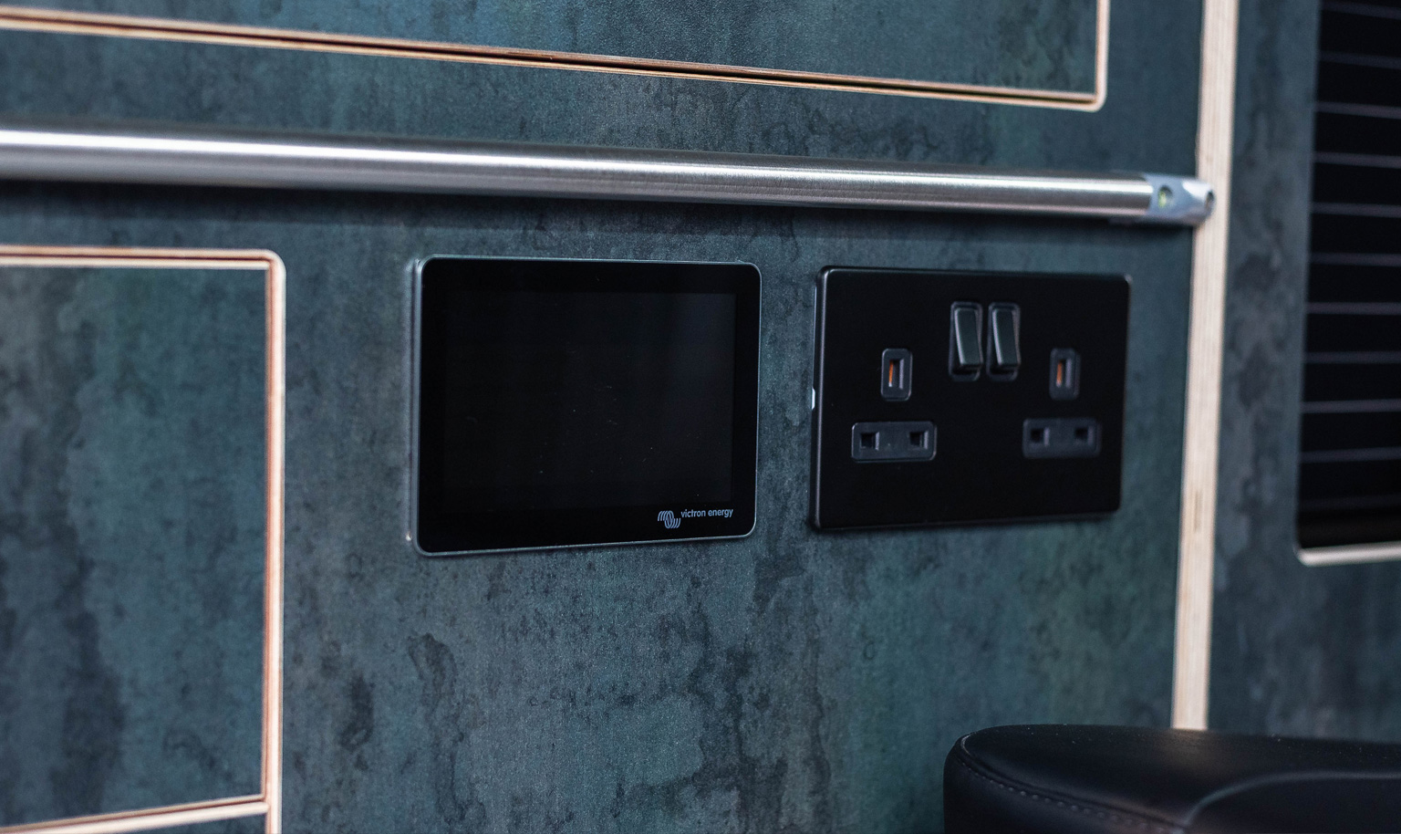 - 160-watt rear exit black solar panel Victron MPPT solar controller (isolation switch provided)